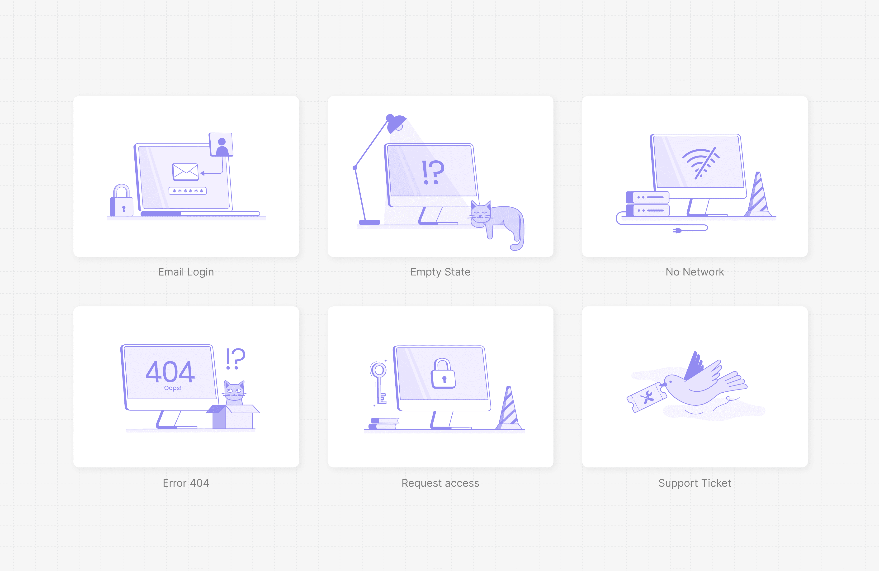 Beyond individual visuals, the objective was to create a consistent style and color framework that integrates seamlessly with the product UI. The illustrations were designed to humanize technical workflows, guide user interaction, and soften friction-heavy moments such as errors and authentication flows.